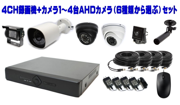 商品名 小型 4CH DVR(録画機)と 6種類カメラのお買得セット商品