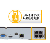 ★ PoE電源出力に対応、カメラとレコーダーを接続するだけ! |