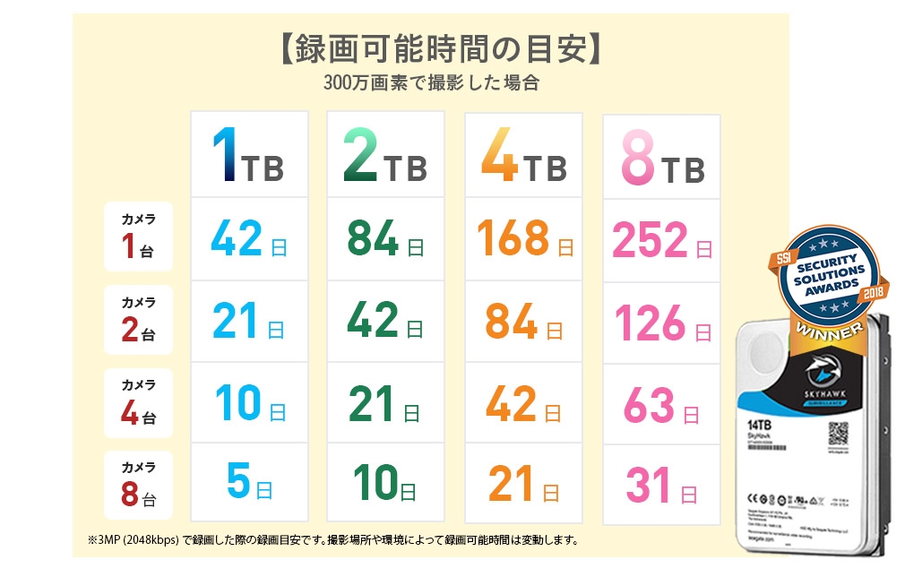 | 防犯カメラシステム専用の大容量ハードディスクを採用 | ||||||||||||||||||||||||||||||||||||||||||||||||||||||||||||||||||||||||||||||||||||||||||||||||||||||||||||||||||||||||||||||||||||||||||||||||||||||||
